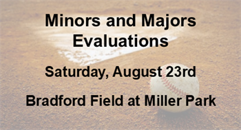 It is time for player evaluations! We will be conducting evaluations on Saturday, August 23rd. Be sure to arrive at Miller Park (Bradford Field) early enough for your player to be warmed up and ready to go.